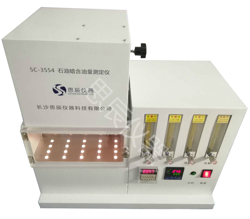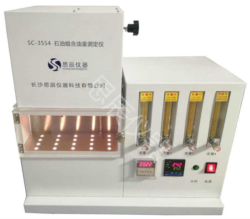 本儀器是中華人民共和國標準 GB/T3554《石油蠟含油量測定法》所規定的要求設計制造的,本儀器適用于凍凝點在 30℃以上,含油量不大于 15%的石油蠟。對于某些含油量大于5%,在丁酮中不能完全溶解而分層的石油蠟本儀器不適用。 將試樣溶解于丁酮溶劑中,溶液冷卻至-32℃時析出蠟,經過濾管取出濾液。并將濾液中的溶劑蒸出,稱重殘留油,通過計算得到試樣含油量的質量分數。