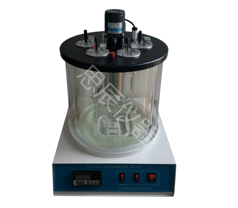 本儀器是根據(jù)中華人民共和國(guó)標(biāo)準(zhǔn)GB/T 265《石油產(chǎn)品運(yùn)動(dòng)粘度測(cè)定法和動(dòng)力粘度計(jì)算法》的規(guī)定,測(cè)定液體石油產(chǎn)品(指牛頓液體)在某一恒定溫度條件下的運(yùn)動(dòng)粘度。做實(shí)驗(yàn)過(guò)程中可同時(shí)對(duì)四組樣品進(jìn)行試驗(yàn)。測(cè)試方法:在某一恒定的溫度下,測(cè)定一定體積的液體在重力下流過(guò)一個(gè)標(biāo)定好的玻璃毛細(xì)管粘度計(jì)的時(shí)間,粘度計(jì)的毛細(xì)管常數(shù)與流動(dòng)時(shí)間的乘積,即為該溫度下測(cè)定液體的運(yùn)動(dòng)粘度。